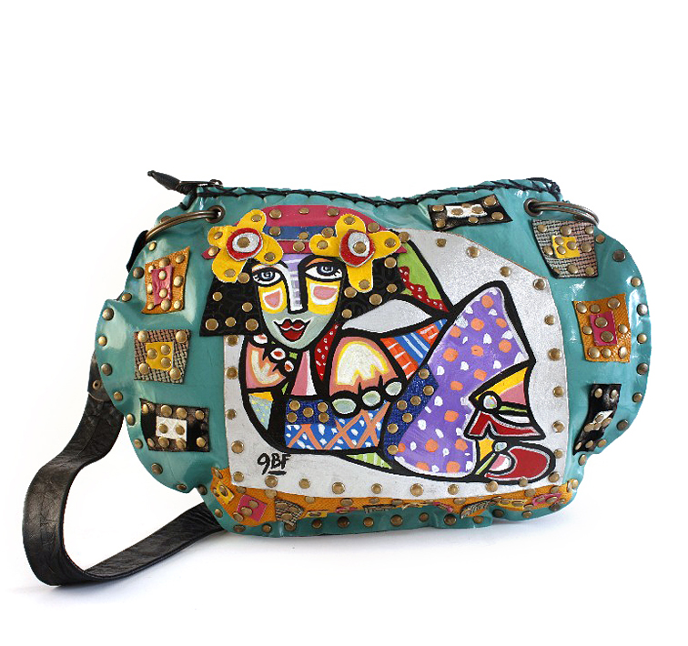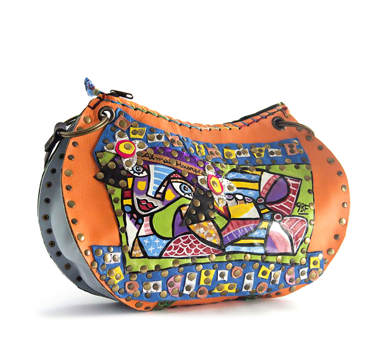 Diseños pintados a mano con pintura especial para cuero, resistente al agua y flexible al movimiento. Detalles en cabretilla, forradas con friselina. Costura a mano y/o máquina.